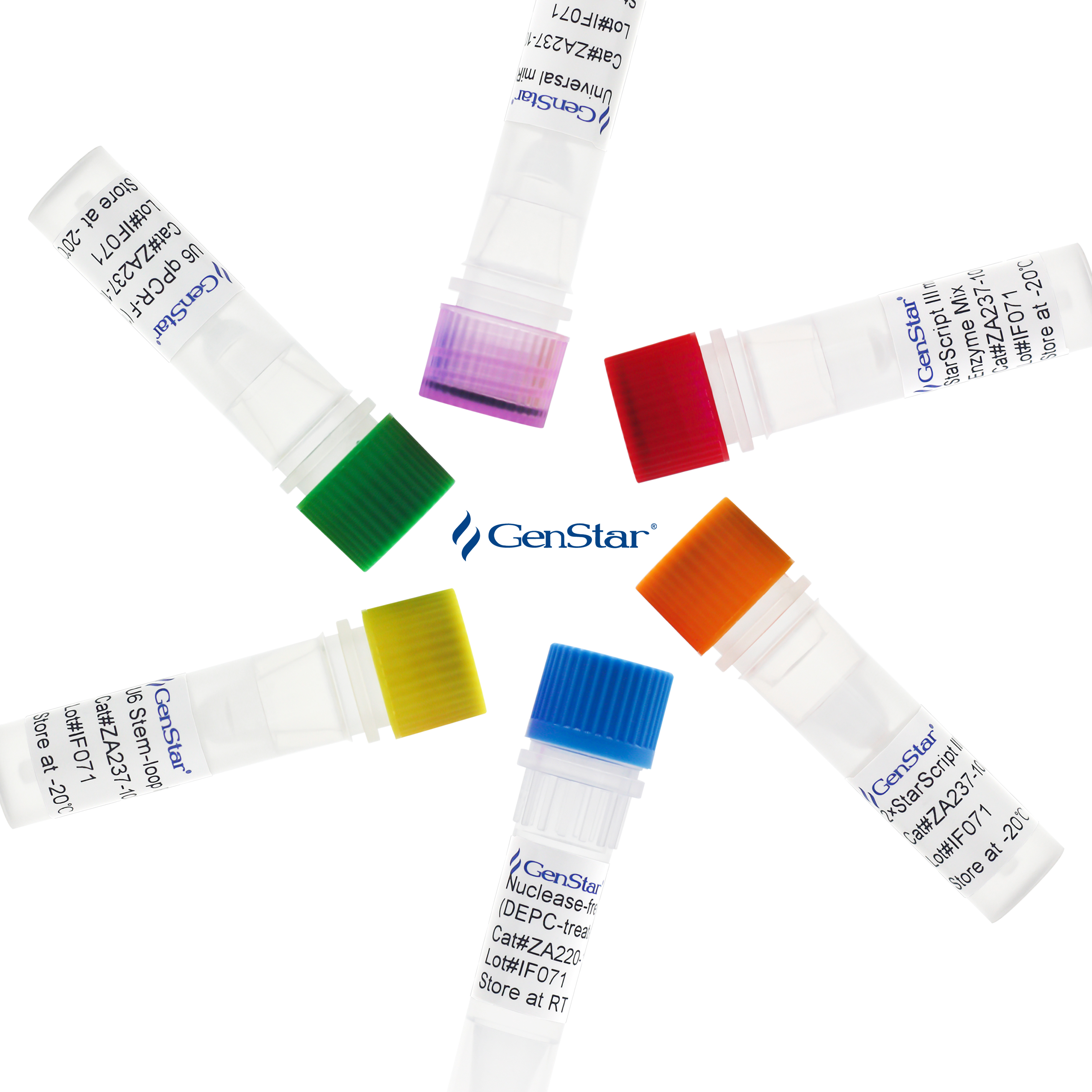 推薦使用通用的莖環(huán)序列為 5'-GTCGTATCCAGTGCAGGGTCCGAGGTATTCGCACTGGATACGAC-3',也可根據(jù)實驗需求選擇其它莖環(huán)序列。通常情況下,逆轉(zhuǎn)錄引物只需在莖環(huán)序列上添加目的 miRNA 3’ 端的 6 個反向互補堿基即可。 此方法特異性高,只對成熟的 miRNA 進行反轉(zhuǎn)錄,不受其前體干擾,序列高度同源的 miRNA 也可以精確區(qū)分。使用本產(chǎn)品獲得的逆轉(zhuǎn)錄產(chǎn)物可直接用于后續(xù)的染料法或探針法熒光定量檢測。染料法推薦使用本公司的 2×RealStar Fast SYBR qPCR Mix(Cat#A301),探針法推薦使用本公司的 2×RealStar Fast Probe Mix(Cat#A351),以獲得更優(yōu)的實驗結(jié)果。